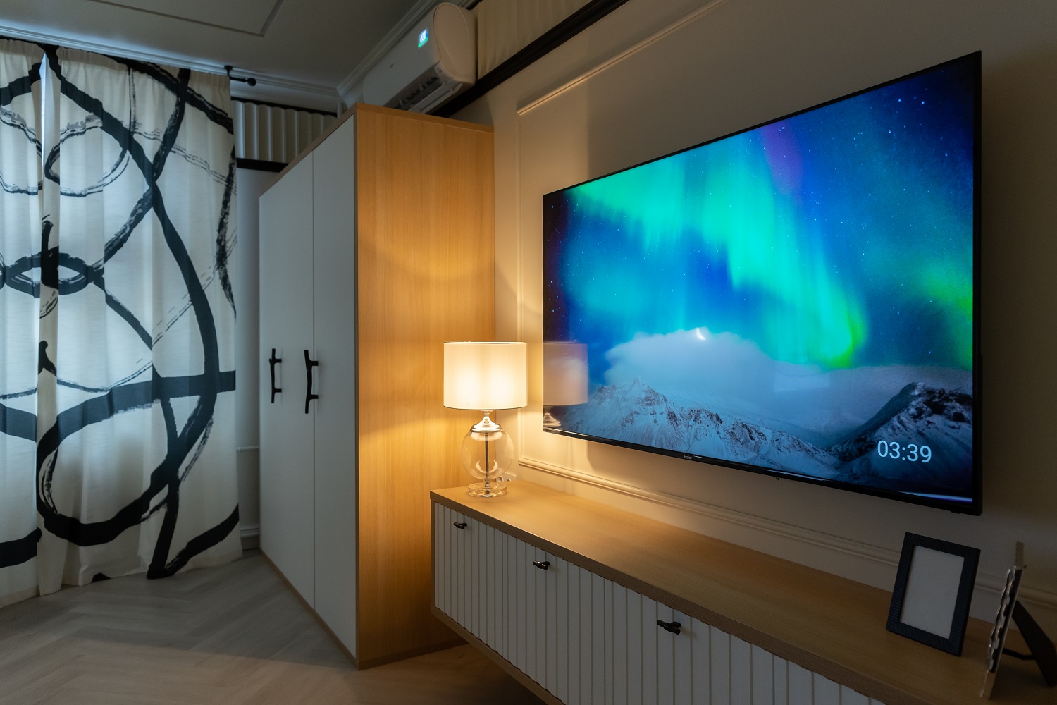 Первым делом дизайнер Ирина Райхер избавилась от многоцветной палитры в гостиной, оставив два основных – черный и белый. При этом, как и хотели герои, в гостиной остался главенствовать белый цвет. А в спальне — черный.